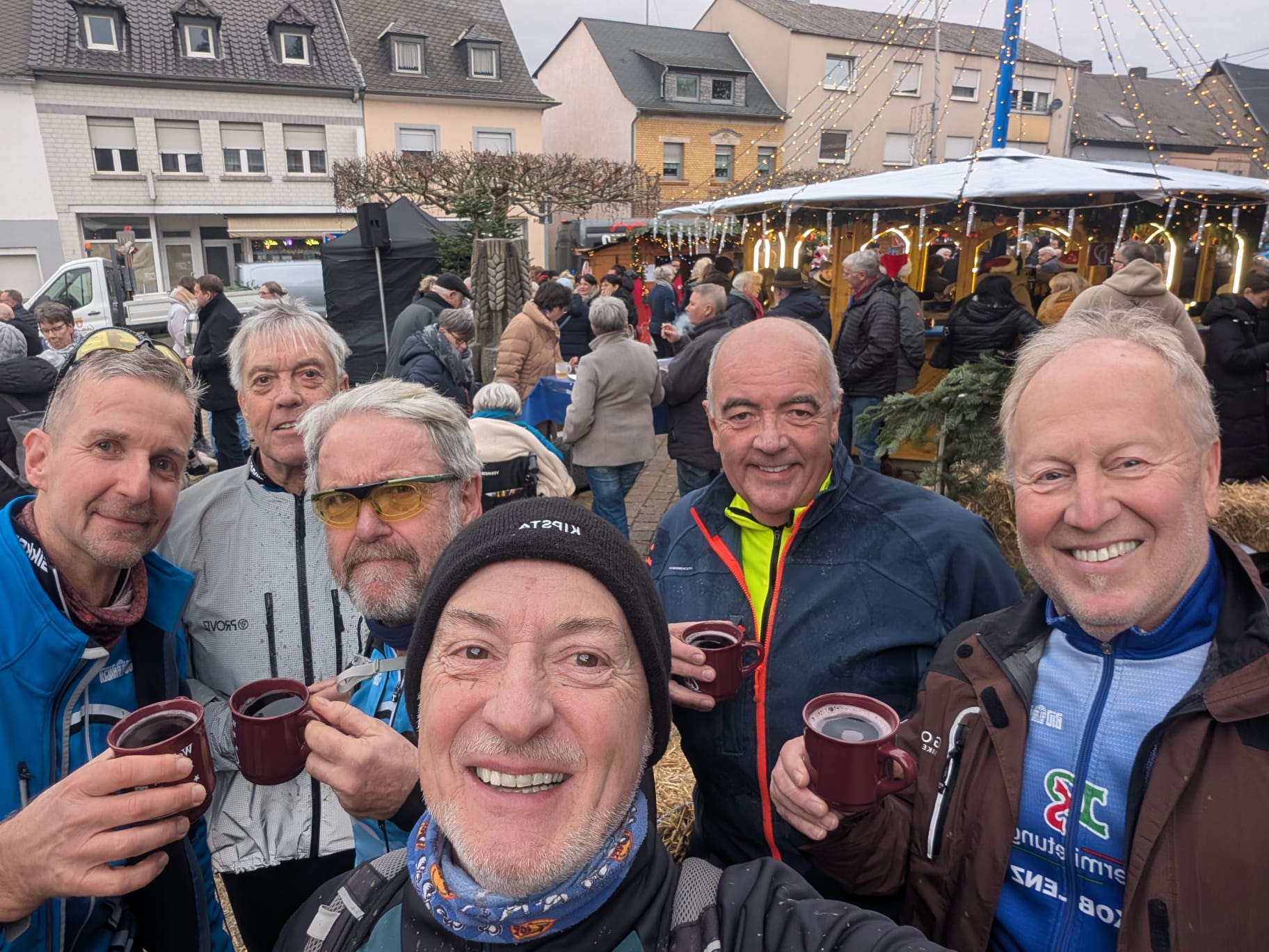 | Auch in diesem Jahr starten die Mountainbiker der Radsport-Abteilung des TV Kärlich wieder ihre Weihnachtsmarkt-Pokal-Serie. Hierbei werden in der besinnlichen Zeit die Weihnachtsmärkte an Samstagen oder Sonntagen in der näheren Umgebung angefahren. Jeweils nach einer 2- bis 3-stündigen Mountainbike-Tour findet dann der Abschluss auf einem der Weihnachtsmärkte statt. Ziele bisher waren Nickenich und Weißenthurm, weitere Orte folgen an den nächsten Wochenenden vsl. Kärlich, Andernach oder in Neuwied. Den Abschluss einer oft matschigen Tour mit einem leckeren Glühwein und einer Bratwurst zu begehen macht Lust auf den nächsten Besuch. Der Teilnehmer mit dem Besuch der meisten Märkte erhält zum Abschluss den begehrten Weihnachtsmarkt-Pokal. |