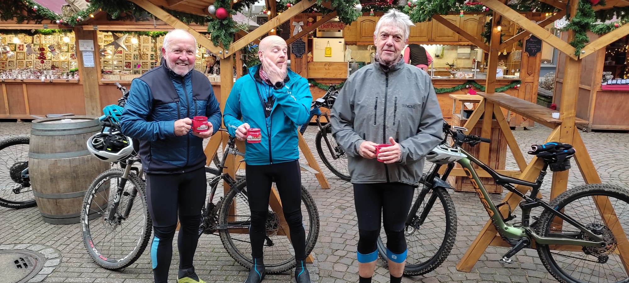 Auch in diesem Jahr starteten die Mountainbiker der Radsport-Abteilung des TV Kärlich wieder ihre Weihnachtsmarkt-Pokal-Serie. Hierbei wurden in der besinnlichen Zeit die Weihnachtsmärkte an Samstagen oder Sonntagen in der näheren Umgebung angefahren. Jeweils nach einer 2- bis 3-stündigen Mountainbike-Tour findet dann der Abschluss auf einem der Weihnachtsmärkte statt. Ziele bisher waren Nickenich und Weißenthurm, weitere Orte folgen an den nächsten Wochenenden vsl. Kärlich, Andernach oder in Neuwied. Den Abschluss einer oft matschigen Tour mit einem leckeren Glühwein und einer Bratwurst zu begehen macht Lust auf den nächsten Besuch. |